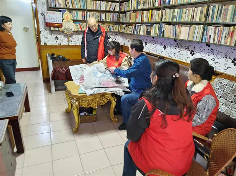 活动当天,兰州市文联党员和兰州市美协会员们满怀热忱,早早抵达社区,与拱星墩街道段家滩西社区工作人员齐聚一堂。大家带着诚挚的心意,为老人们送上了最真挚的祝福。美协会员们充分发挥自身专业优势,饱含着对老人们的深深敬爱与祝福,挥毫泼墨,将创作好的一幅幅精美的艺术作品送到老人手中。老人们接过这些寓意吉祥、饱含美好祝愿的国画作品,脸上瞬间绽放出幸福的笑容,那笑容如同冬日暖阳,温暖而灿烂。
