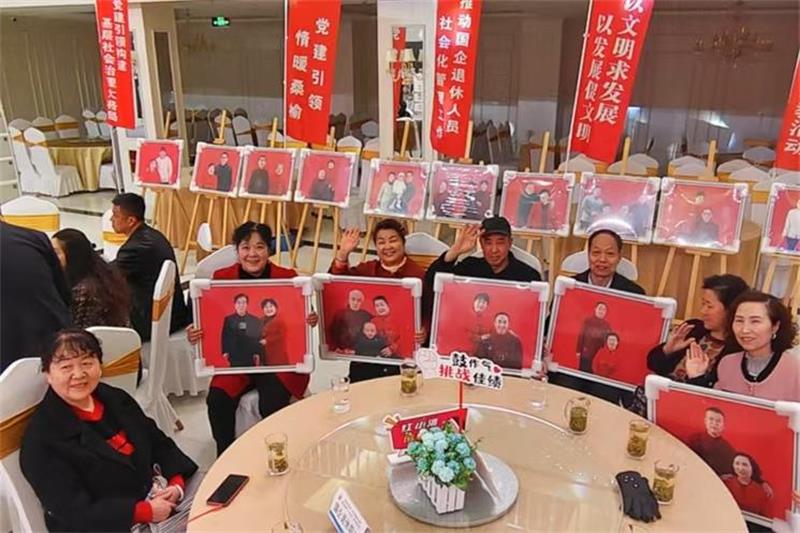 活动现场,红红火火,两排“全家福”照片整齐地排列在大厅两侧。来自甘肃省摄影家协会、兰州市摄影家协会和《人民摄影报》甘肃站的摄影工作者现场将50幅为辖区国企退休职工拍摄的全家福照片赠送到他们手中,现场气氛温暖且感人。