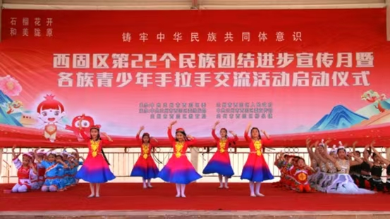 活动在欢快的开场舞《中华大团圆》中拉开序幕,舞者们用优美的舞姿展现了各民族和谐共处、团结一心的美好景象,瞬间点燃了现场气氛。来自东乡族自治县的45名青少年以饱满的热情亮相开幕式,拉开了西固区与东乡族自治县各族青少年手拉手交流活动的帷幕。