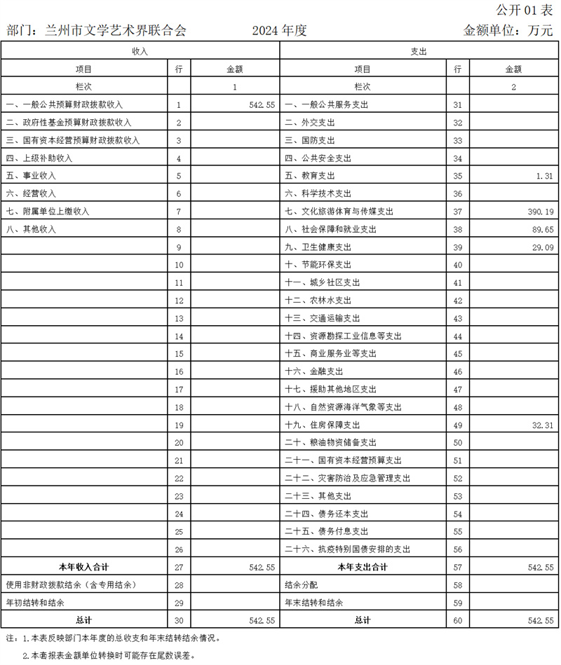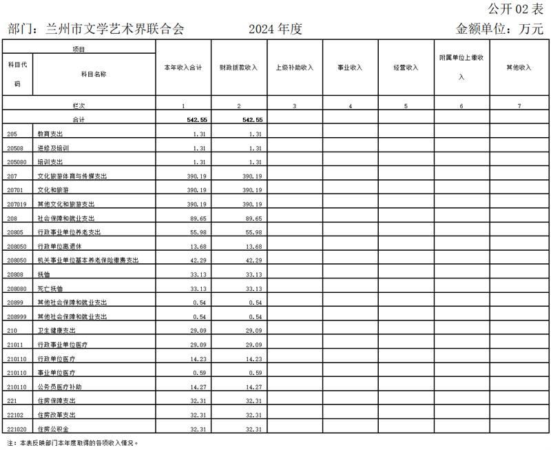 首页 > 工作提示 > 2024年度兰州市文学艺术界联合会部门决算