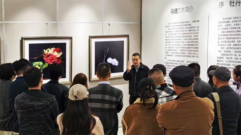 活动现场,兰州市摄影家协会主席马健以《解码摄影美学:从纪实到新锐的视觉对话》为题,结合“绝冠陇上的花儿——马健牡丹摄影艺术展”的众多摄影作品,带来一场兼具专业性与启发性的主题分享。他结合自身多年创作实践,系统阐释了摄影美学的核心理念——从光影运用、构图节奏到情感表达,深入剖析“瞬间”的力量与“定格”的意义。在解读纪实摄影时,突出了其作为“时代见证者”的社会责任;在探讨当代新锐摄影时,则强化了其观念性、实验性与跨界融合的美学特征,引发观众对摄影多元表达的深度思考。