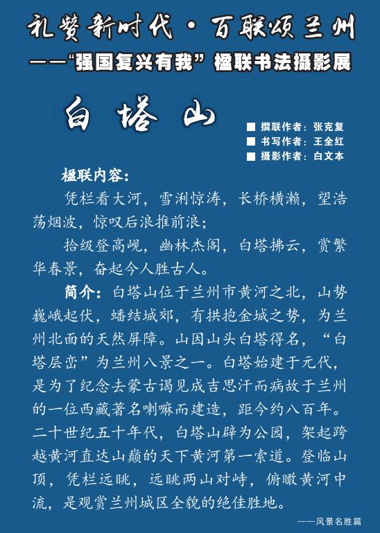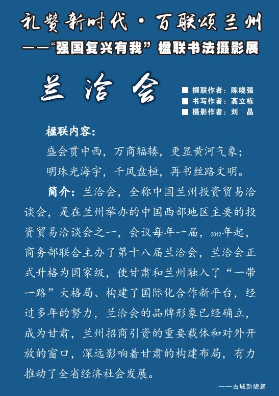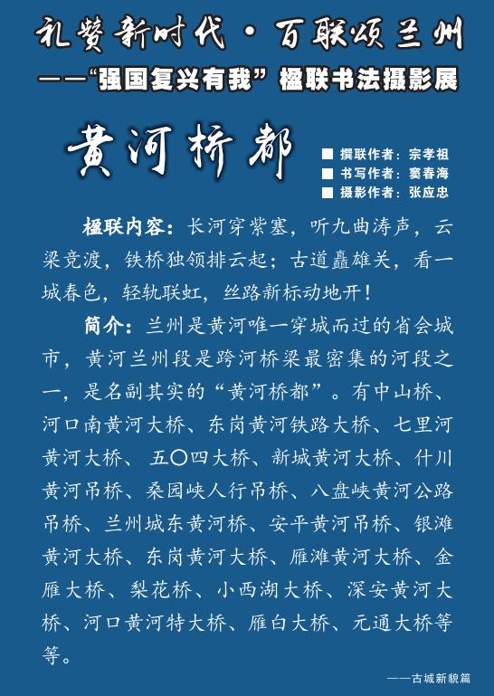 “礼赞新时代·百联颂兰州”楹联书法摄影网络展(一)