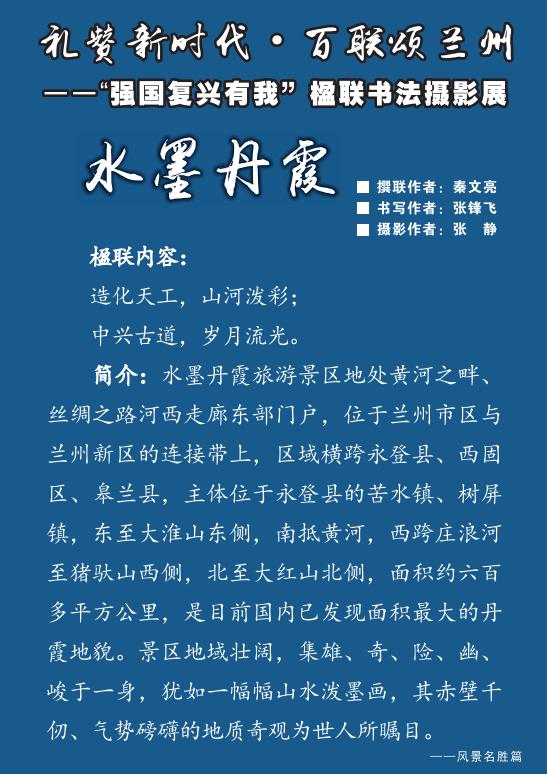 首页 > 艺术家风采 > “礼赞新时代·百联颂兰州”楹联书法摄影网络展(一)