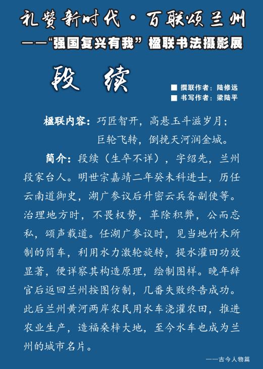 标题:段续 撰联作者 陆修远 书写作者 梁陆平