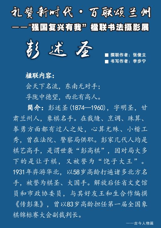 标题:彭述圣 撰联作者 张俊立 书写作者 李步宁