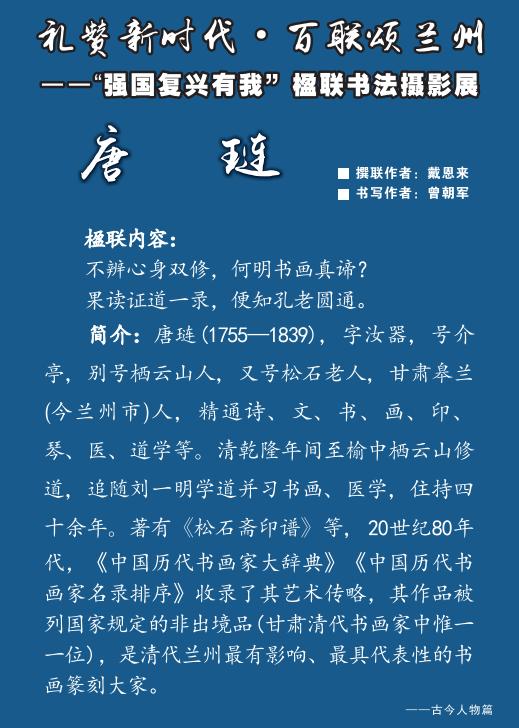 标题:唐琏 撰联作者 戴恩来 书写作者 曾朝军
