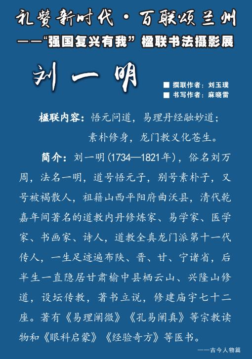 标题:刘一明 撰联作者 刘玉璞 书写作者 麻晓雷