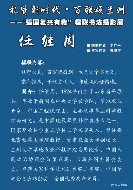 标题:任继周 撰联作者 李广平 书写作者 黄晓宇