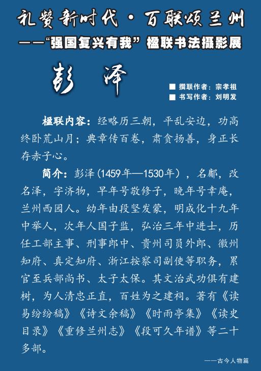 标题:彭泽 撰联作者 宗孝祖 书写作者 刘明发