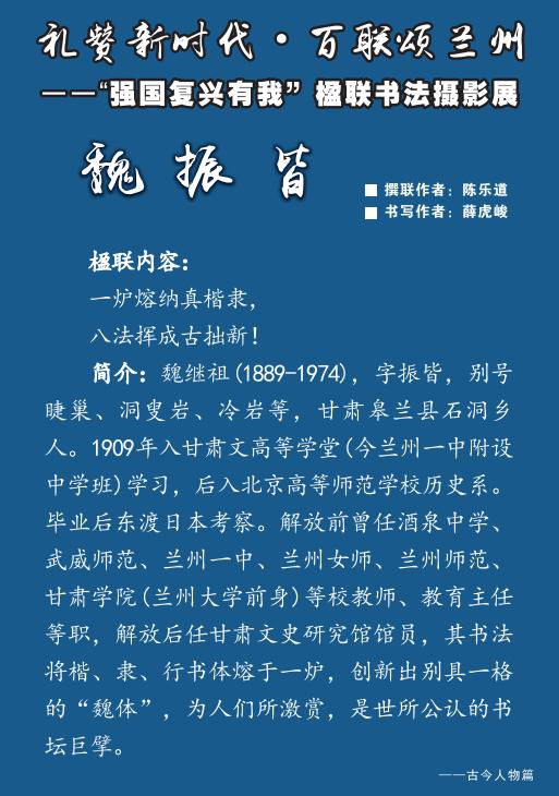 标题:魏振皆 撰联作者 陈乐道 书写作者 薛虎峻