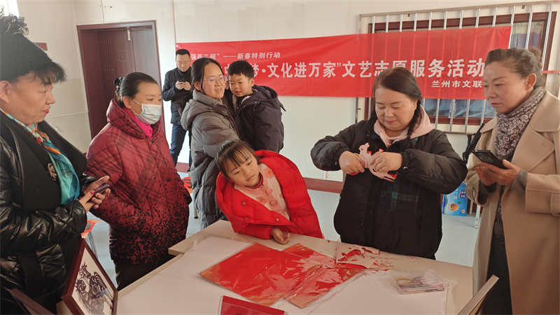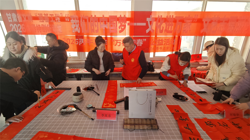 2月3日,由省文联、市文联联合开展的“强基工程—2026年新春特别行动”暨“我们的中国梦·文化进万家”文艺志愿活动走进西固区清水桥社区。此次活动以饱含深情的春联福字和传统剪纸作品为载体,向辛勤工作的社区工作者及辖区居民送上了贴心的新春祝福与文化关怀。