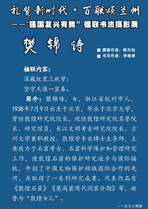 标题:樊锦诗 撰联作者 陈竹松 书写作者 李维君