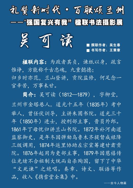 标题:吴可读 撰联作者 吴生春 书写作者 王秉章