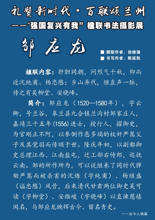 标题:邹应龙 撰联作者 徐维强 书写作者 陈延凯