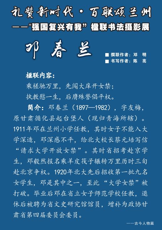 标题:邓春兰 撰联作者 邓明 书写作者 陈亮
