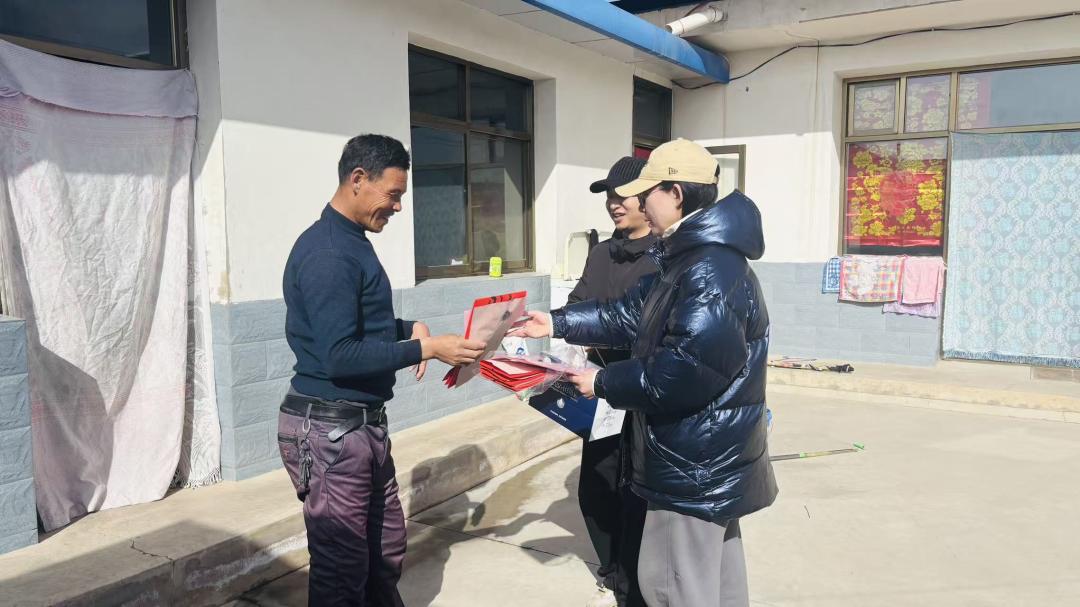 市文联帮扶干部与村“两委”班子、驻村工作队在边岭新村文化广场举行简短而庄重的捐赠仪式。活动现场,帮扶干部将承载着关怀的慰问品与洋溢着节日喜庆的春联福字,逐一递到群众手中,同时向村民散发了移风易俗宣传资料。
